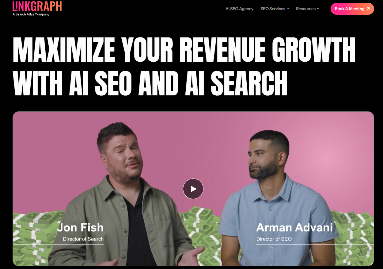 LinkGraph’s SearchAtlas platform streamlines time-intensive SEO tasks. The agency builds topical authority through AI content generation.
