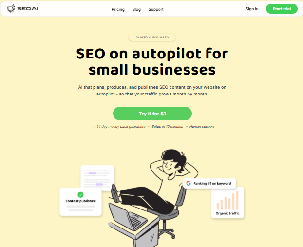 SEO.ai’s platform offers AI-powered content optimization with clear SEO scores. Their system learns from your documents to match your brand’s voice perfectly.