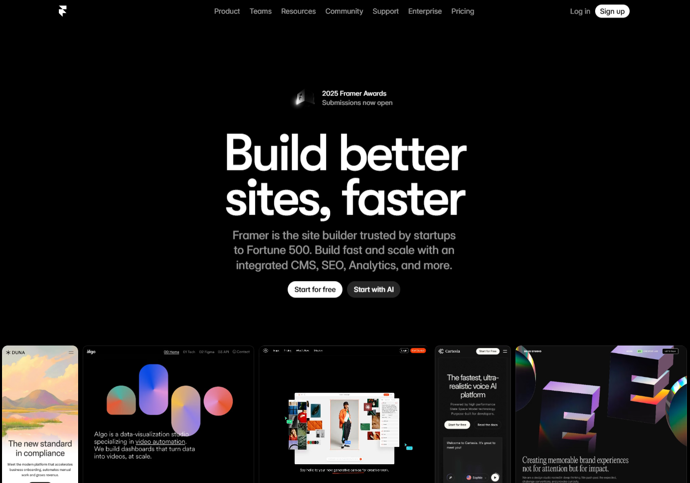 Framer stands out as a design-first AI website builder that gives professionals complete creative control. What started as a prototyping tool has grown into a complete platform. Now you can create responsive, professional websites without writing code.