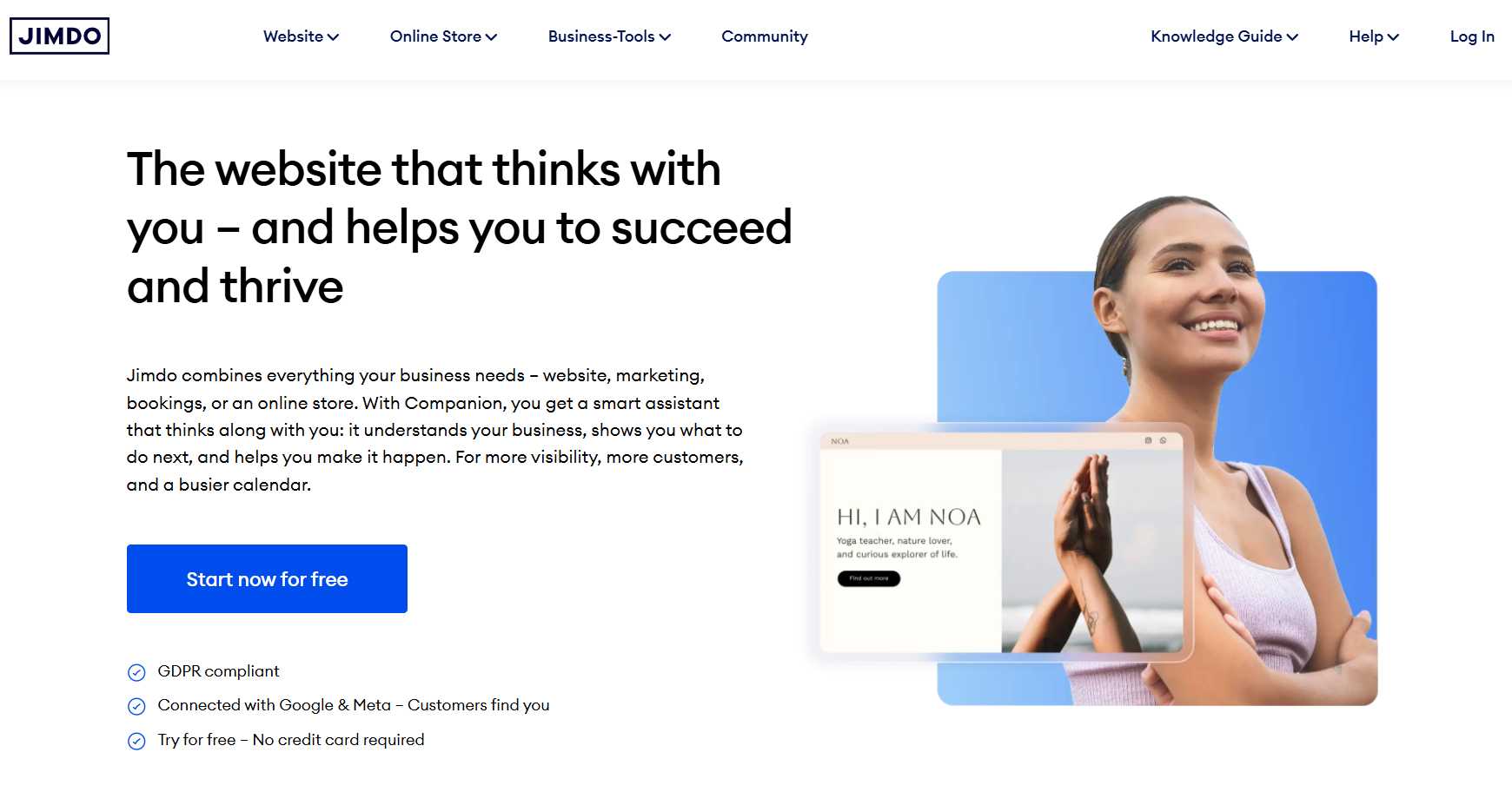 | Jimdo | Free (starter) | – AI-powered Dolphin builder – Logo maker – Business listings – Mobile optimization | – Automatic SEO tasks – Keyword targeting – Google Search Console integration | – Quick setup – Free SSL – No transaction fees | – Limited templates – Dated designs – Simple SEO features |