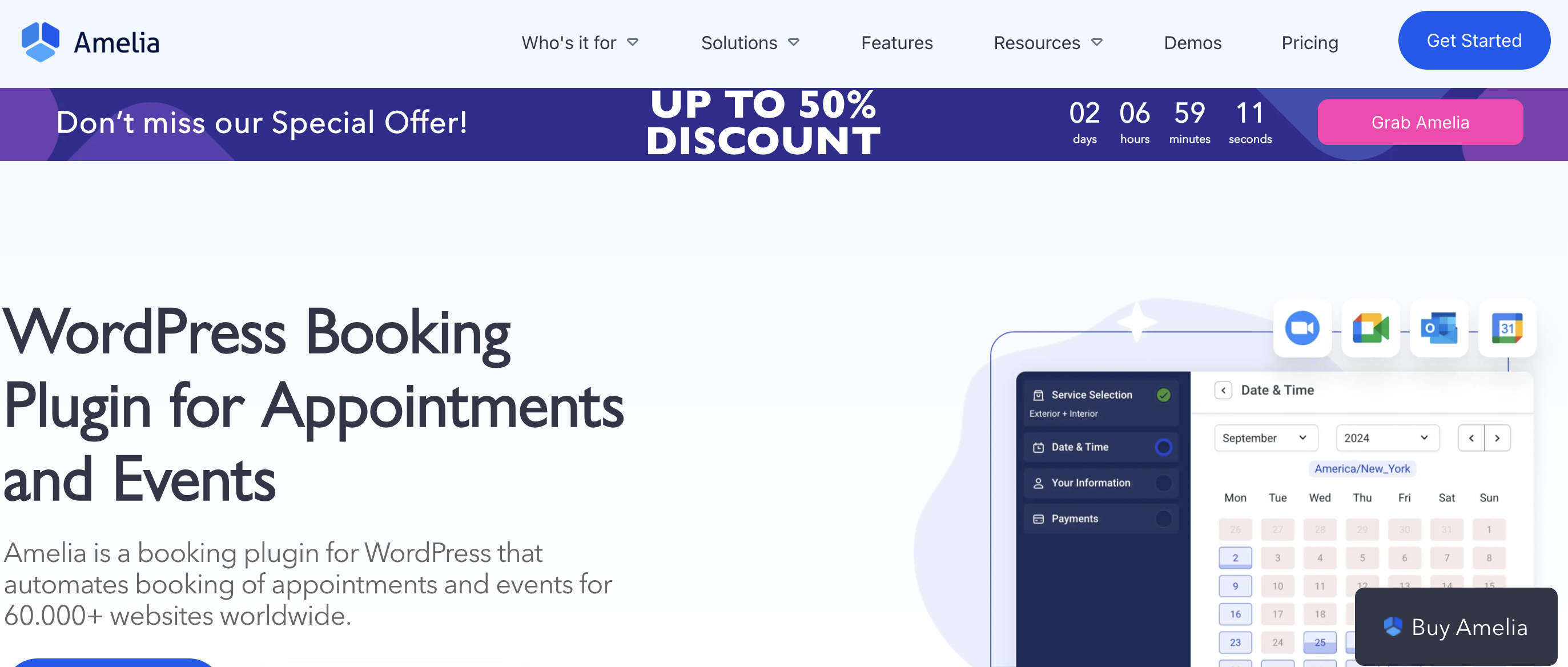- Modern interface: Amelia’s key highlight is its contemporary and visually pleasing user experience. Comes with an intuitive layout, offering an optimal user experience for both staff members and clients alike.