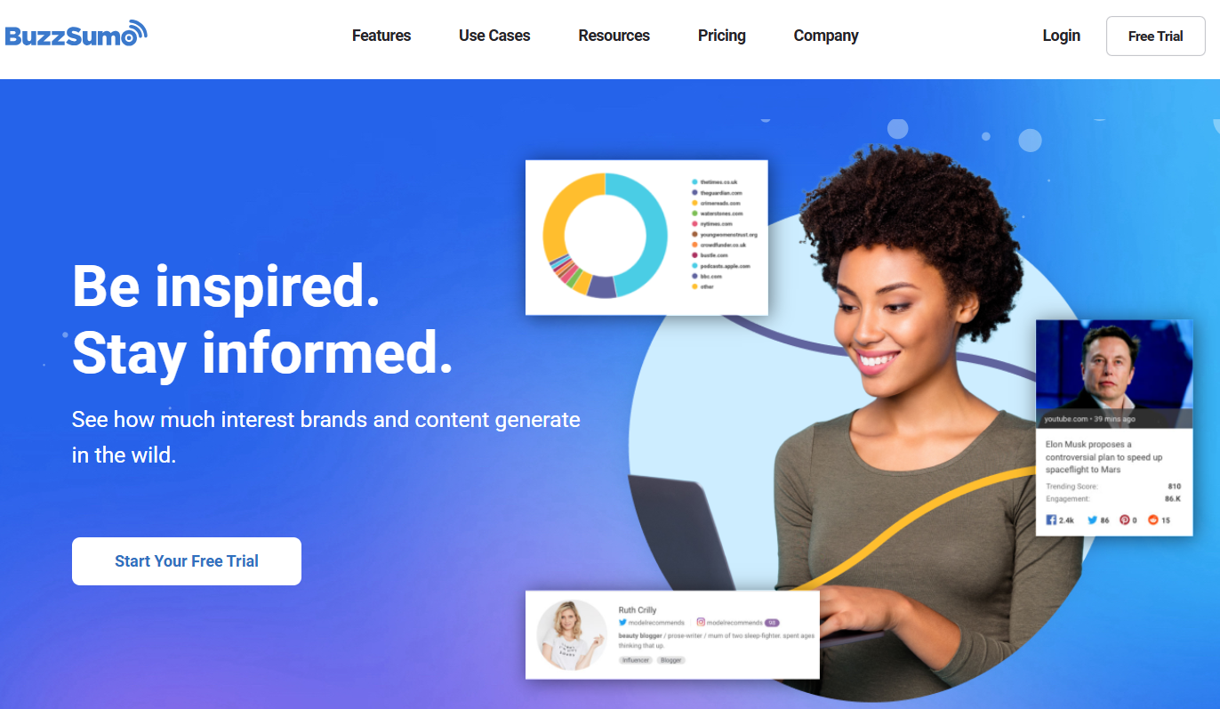 BuzzSumo serves as a powerhouse for content marketing in the digital world. The platform analyzes billions of articles and social posts to provide applicable information for your content strategy.