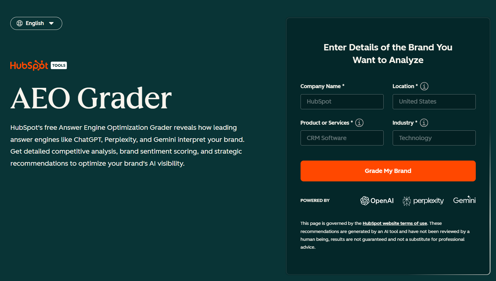 The tool needs no complex setup or special knowledge. Enter your brand details and let the AI Search Grader do the analysis.