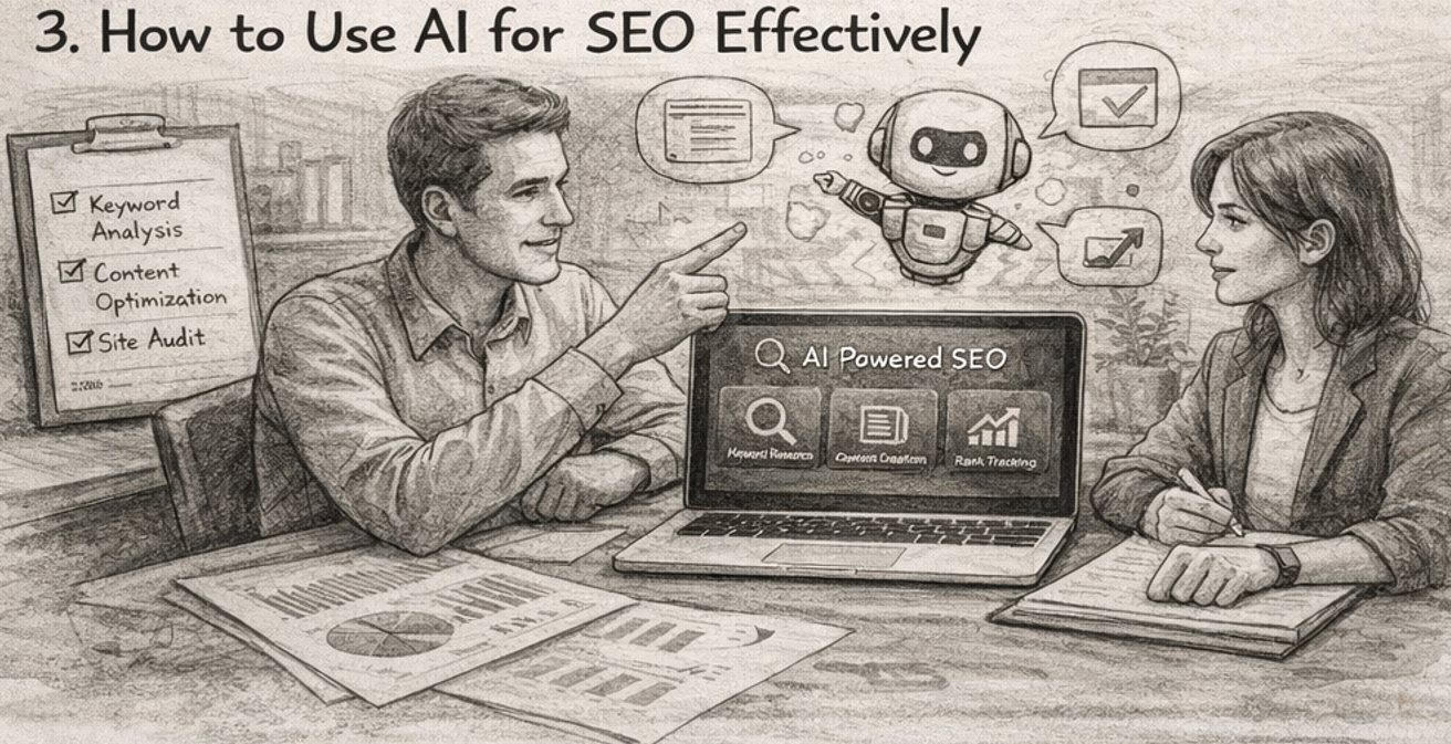 The best results come from mixing AI’s analytical strength with human creativity. You should set clear goals, pick the right tools like Jasper, Surfer SEO, or Search Atlas, and track your results regularly. This approach creates content that works for both search engines and readers.